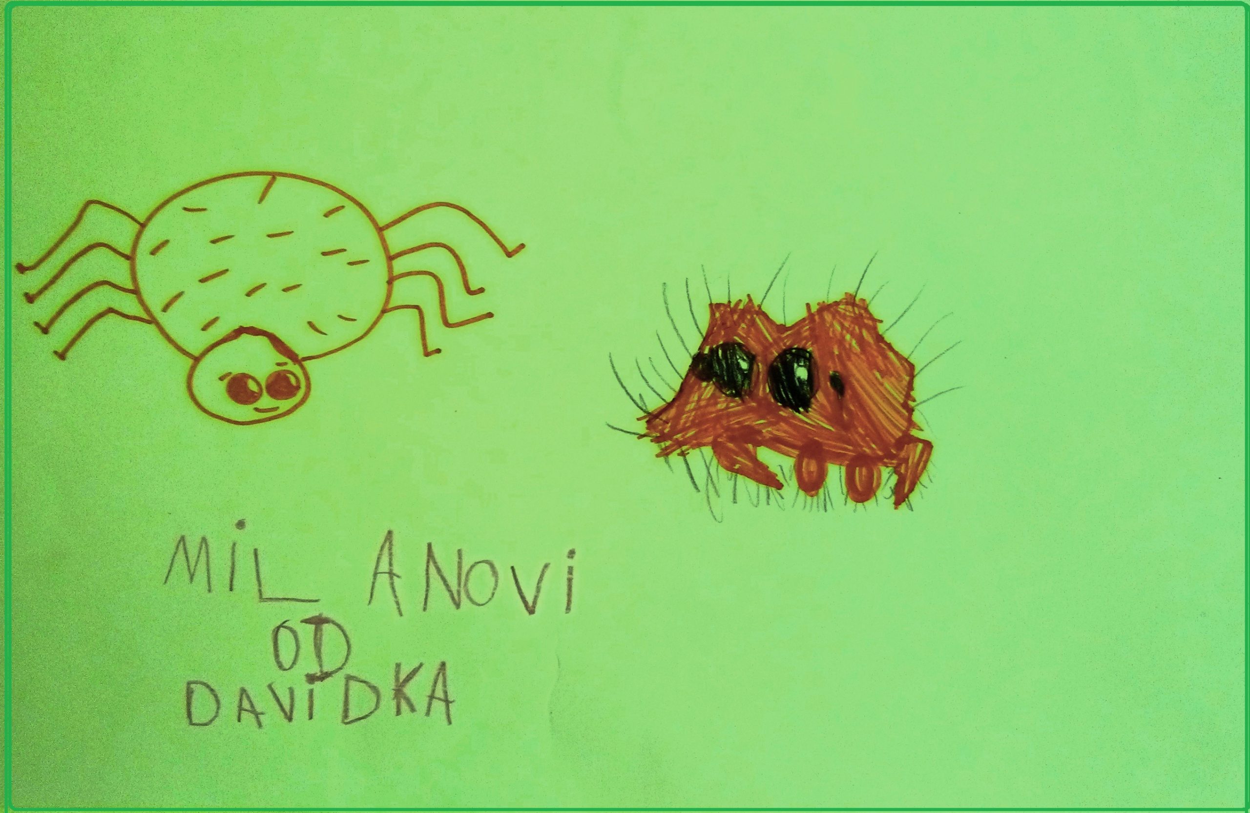 som počas návštevy sestry Natašy videl ako jej 5 ročný vnúčik Dávidko kreslil pavúčika, ktorý ho zaujal v krátkych videjkách, ktoré mu mamička Lenka našla na YouTube.