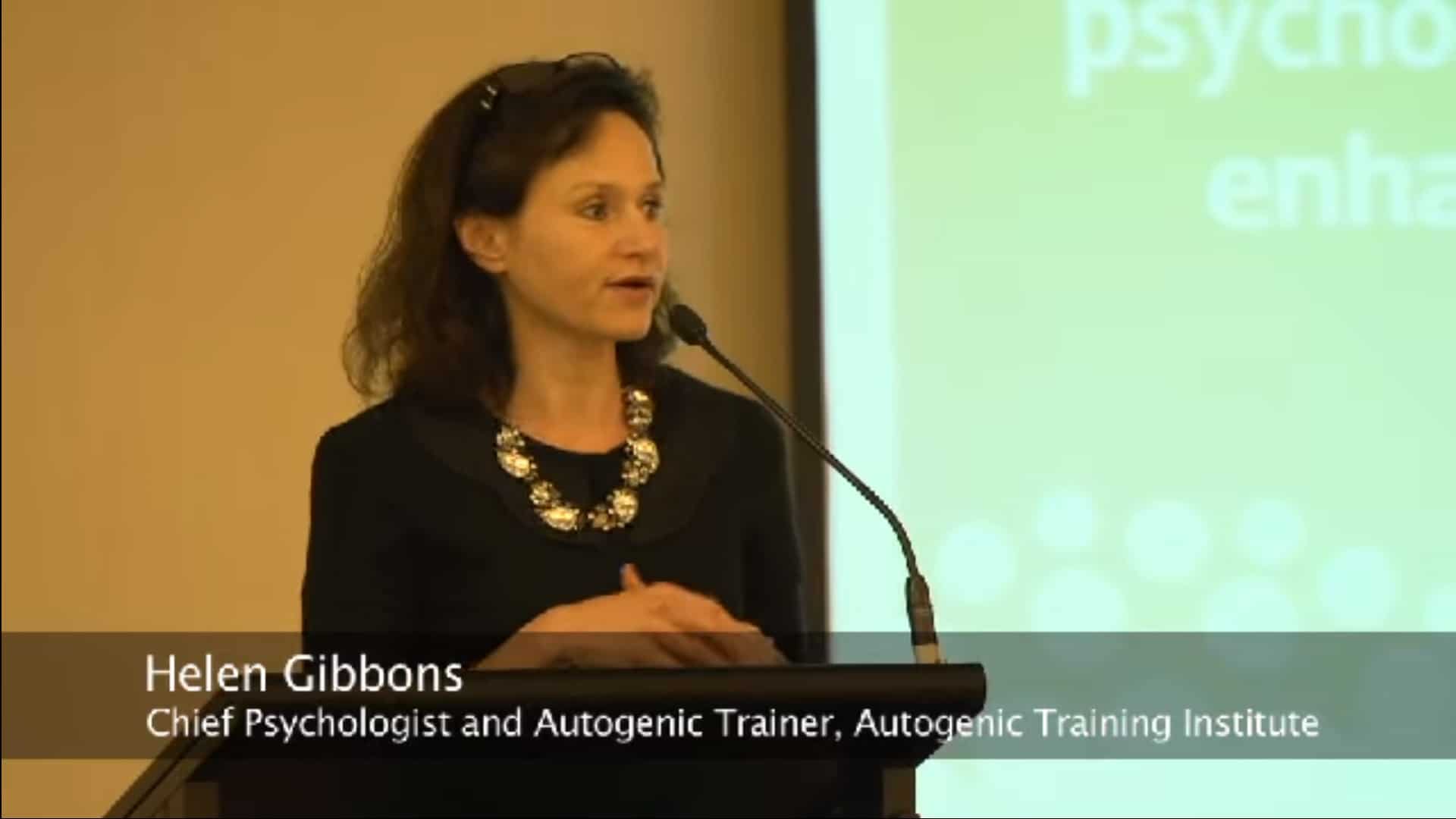 Helen Gibbons: Director and Founder of Autogenic Training Institute, Psychologist (Organisational, Clinical, Health, ) MAAP, AAS (President), ISATAP (Board), BAS (Honorary)