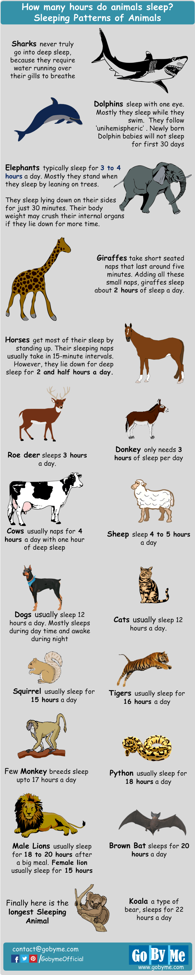 V nižšie uvedenej tabuľke si určite všimnete, že zvieratá umiestnené v potravinovej pyramíde vyššie spávajú dlhšie. Je to logické – môžu si to dovoliť. Evolúcia spánok nastavila tak, aby maximalizovala zvieraťu šancu prežiť.
